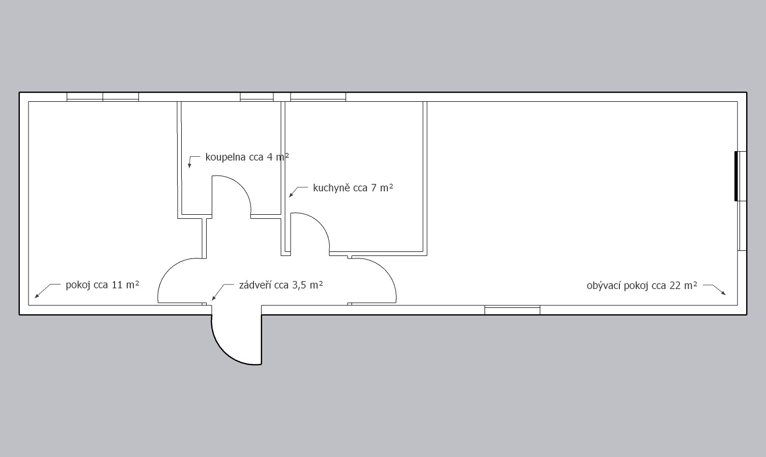 | Rozměry: | 13,19 x 4,19 (cca 55m2) |