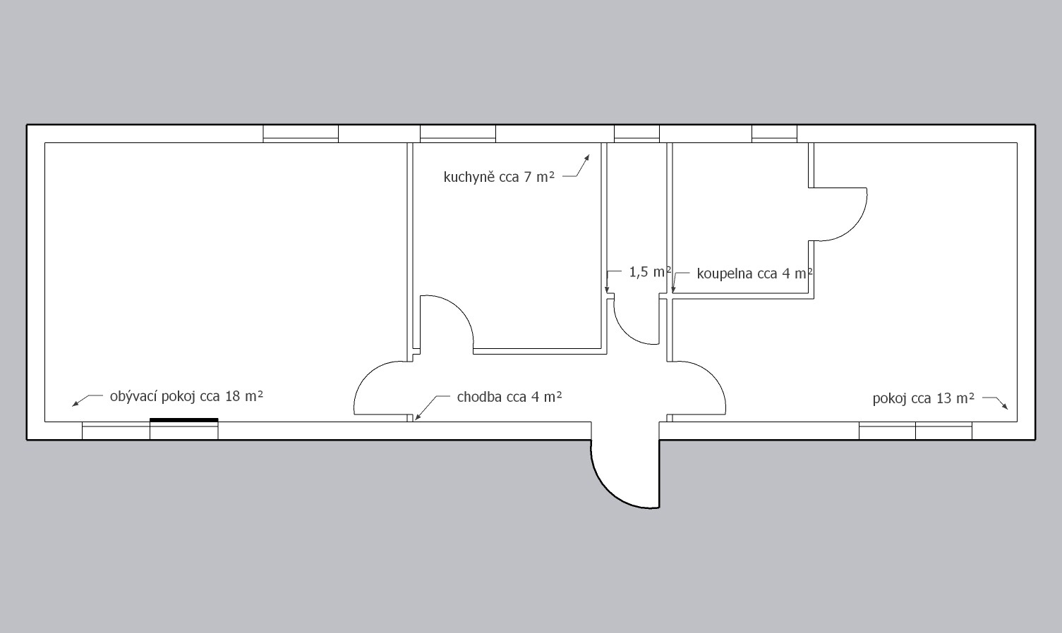 | Rozměry: | 13,39 x 4,19 (56m2) |