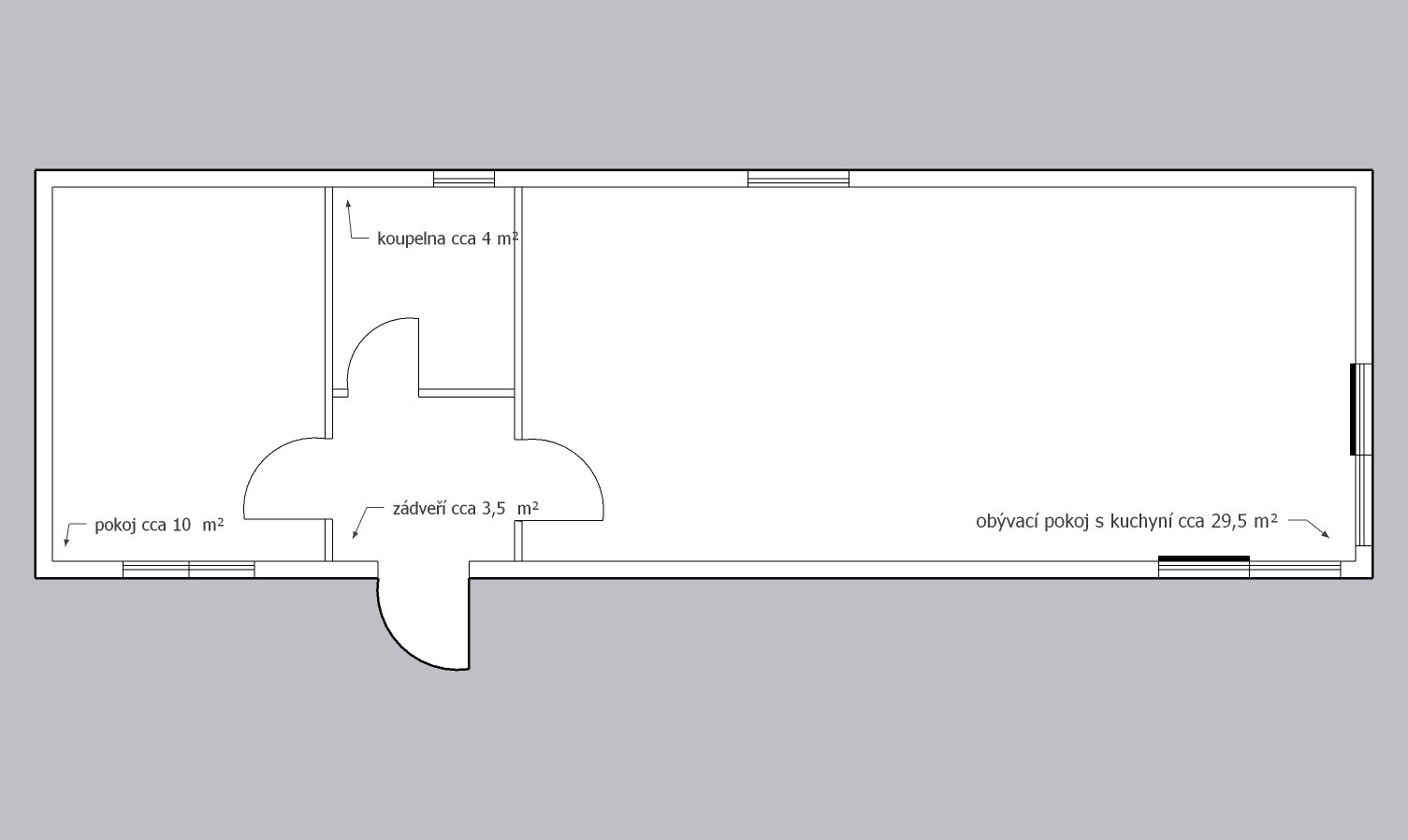 | Rozměry: | 13,39 x 4,19 (cca 56m2) |