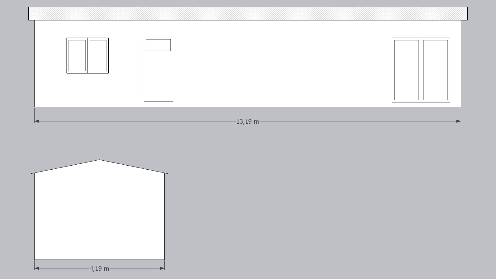 Rozměry: 13,19 x 4,19 (cca 55m2)