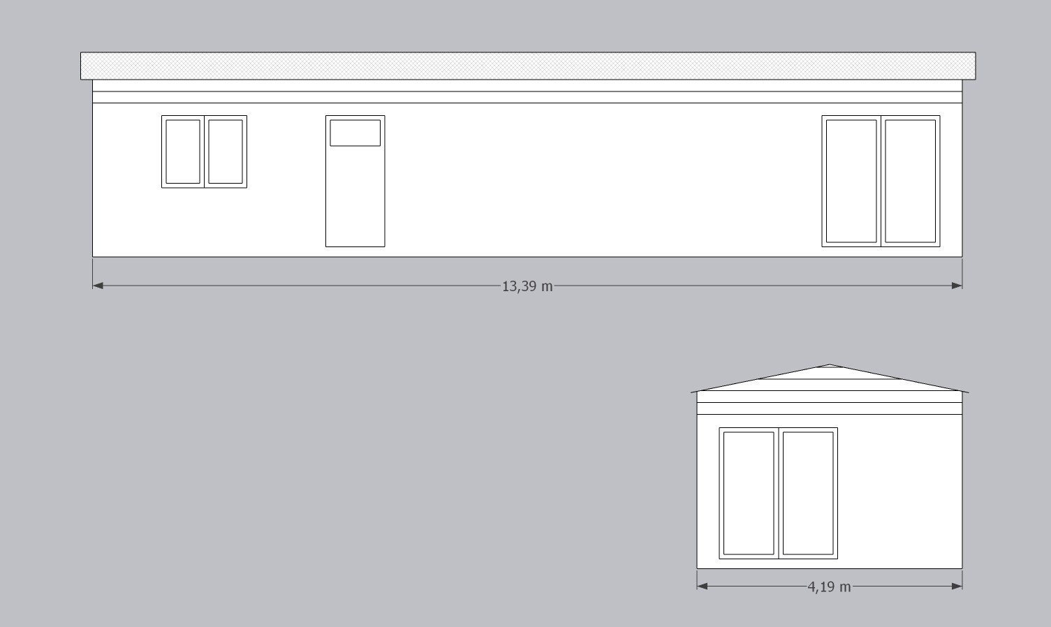 Rozměry: 13,39 x 4,19 (cca 56m2)
