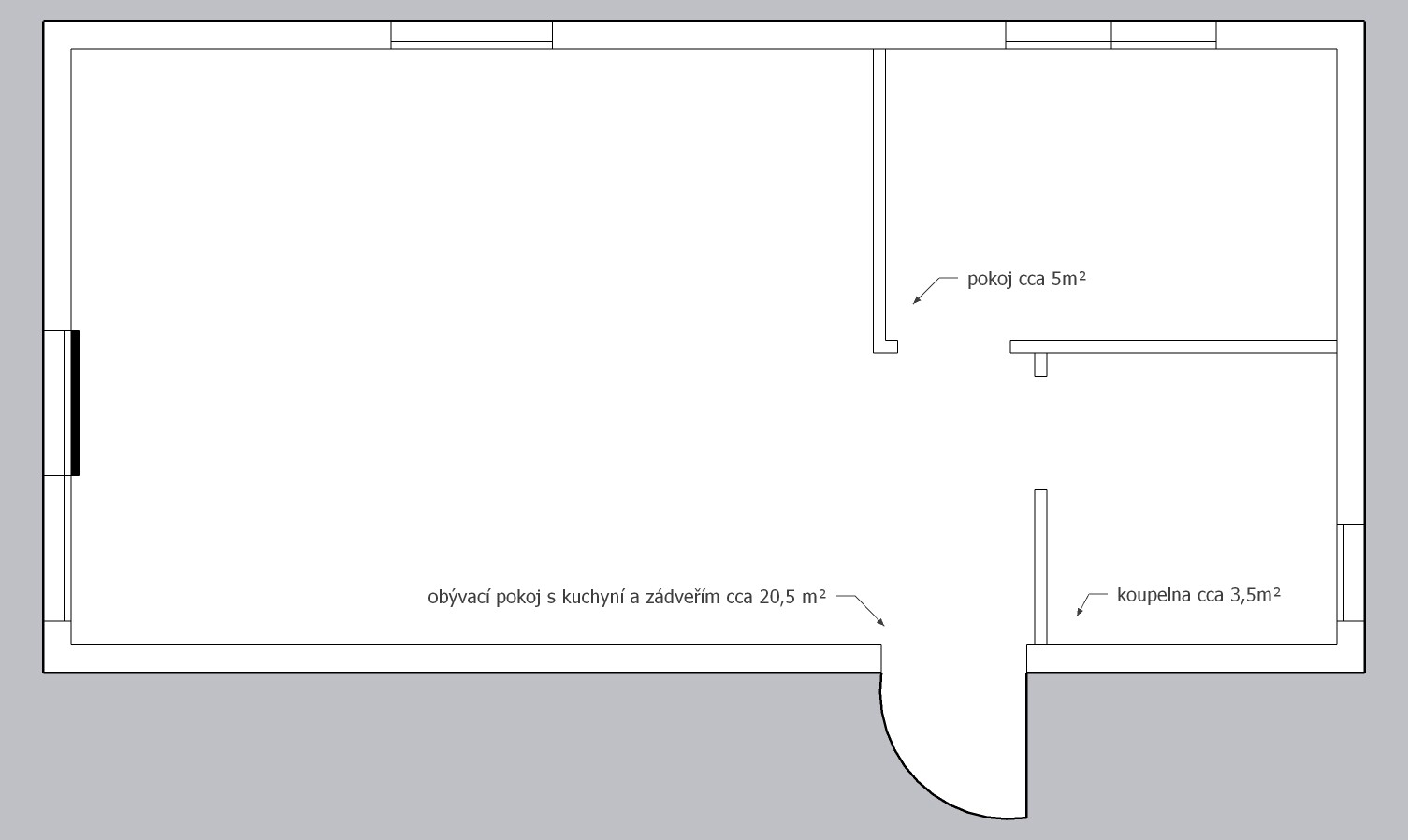 | Rozvržení: | 1 ložnice, obývací pokoj s kuchyňským koutem, koupelna, WC |