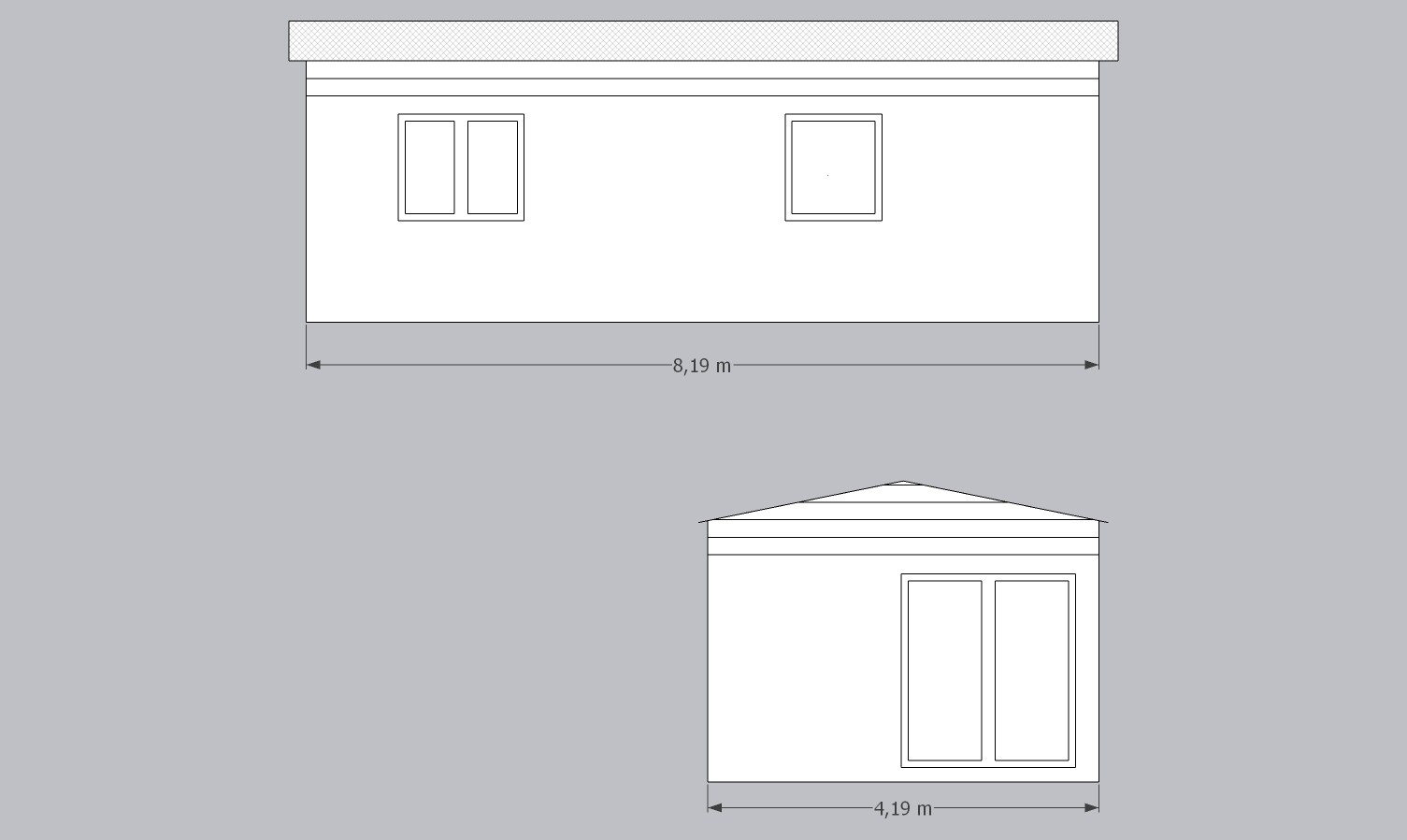 Rozměry: 8,2 x 4,2 (cca 34m2)