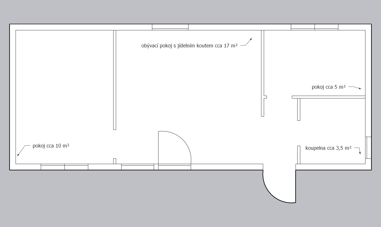 | Rozměry: | 10,2 x 4,2 (cca 43m2) |