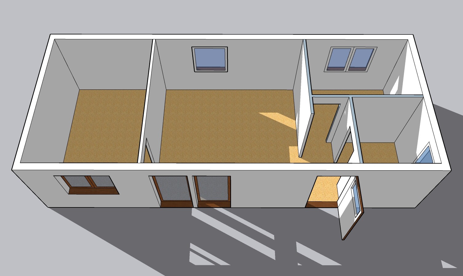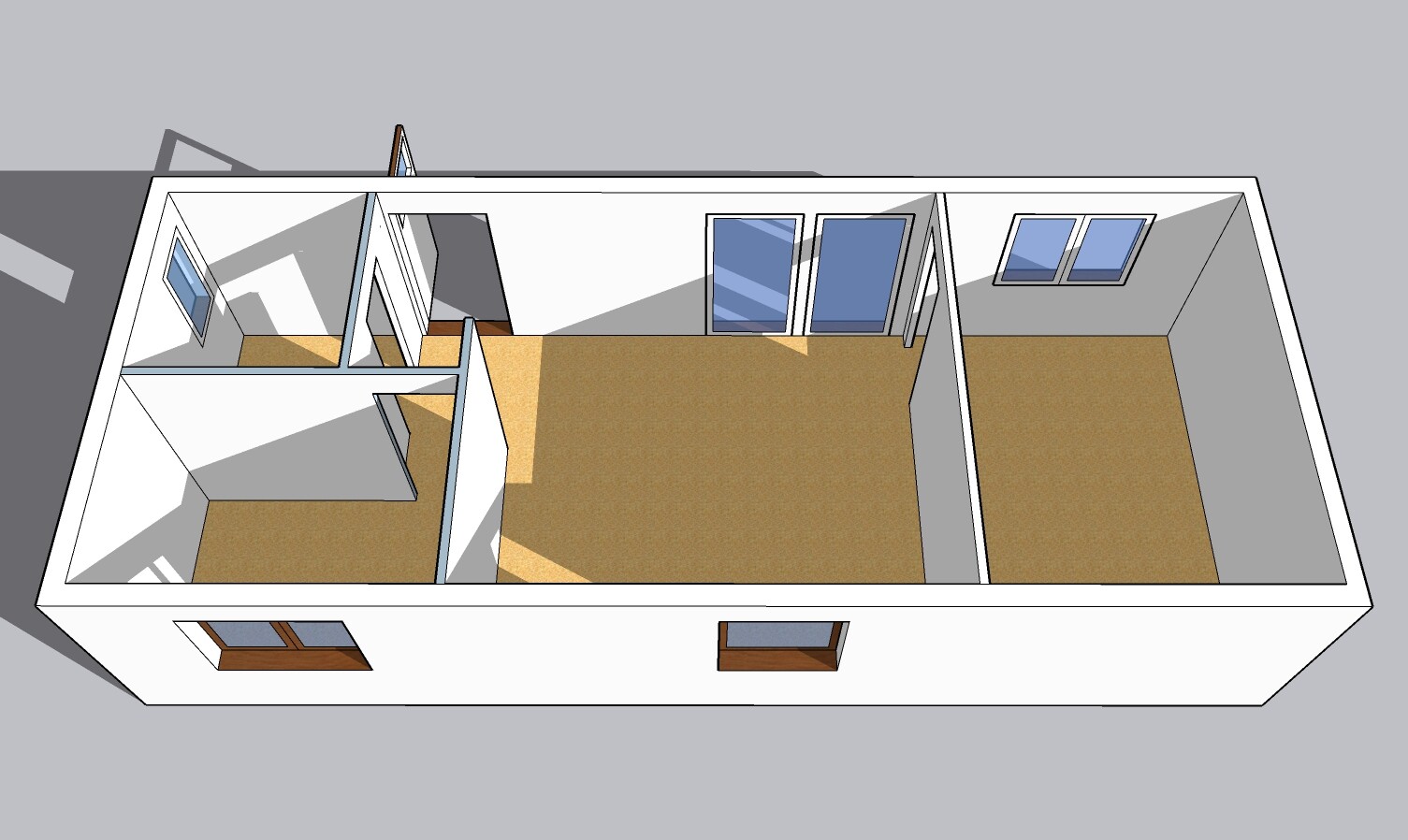 | Výbava: | Nový mobilheim jako holobyt, fasádní lepidlo, vnitřní stěny sádrokarton, dřevěný strop, síla vnějších stěn cca 24 cm (minerální vata + polystyren), podlahy cca 15 cm (minerální vata), střechy cca 24 cm (minerální vata) |