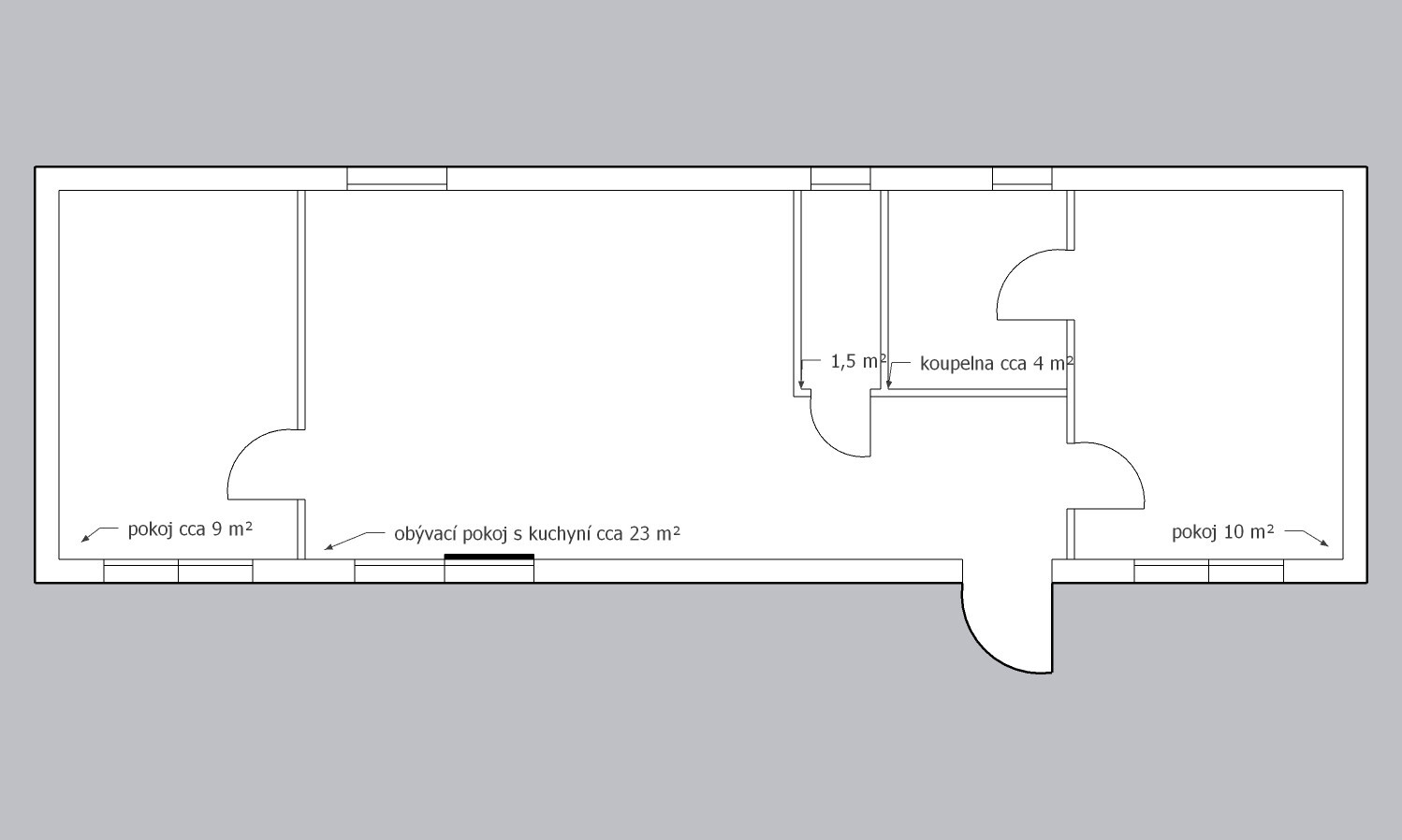 Rozměry: 13,39 x 4,19 (56m2)