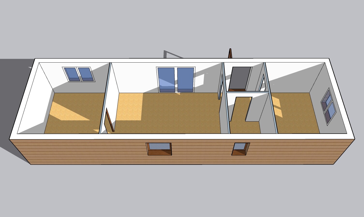 Výbava: Nový mobilheim jako holobyt, dřevěný obklad, vnitřní stěny sádrokarton, strop dřevěný obklad, možnost nainstalování podlahy, obložek a vnitřních dveří, koupelnového vybavení, kuchyně