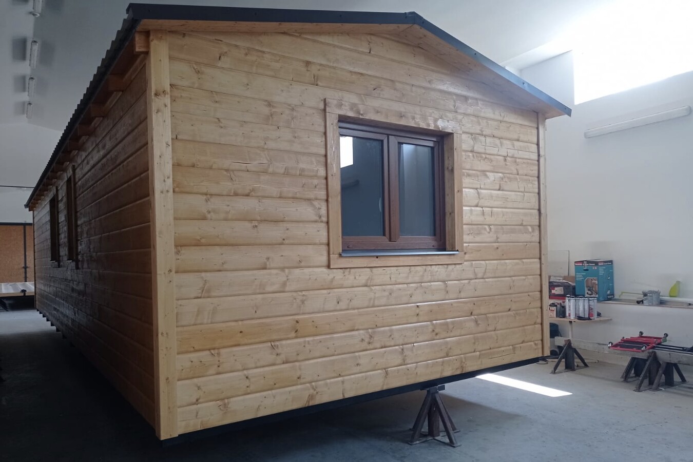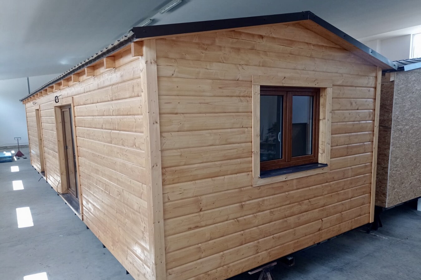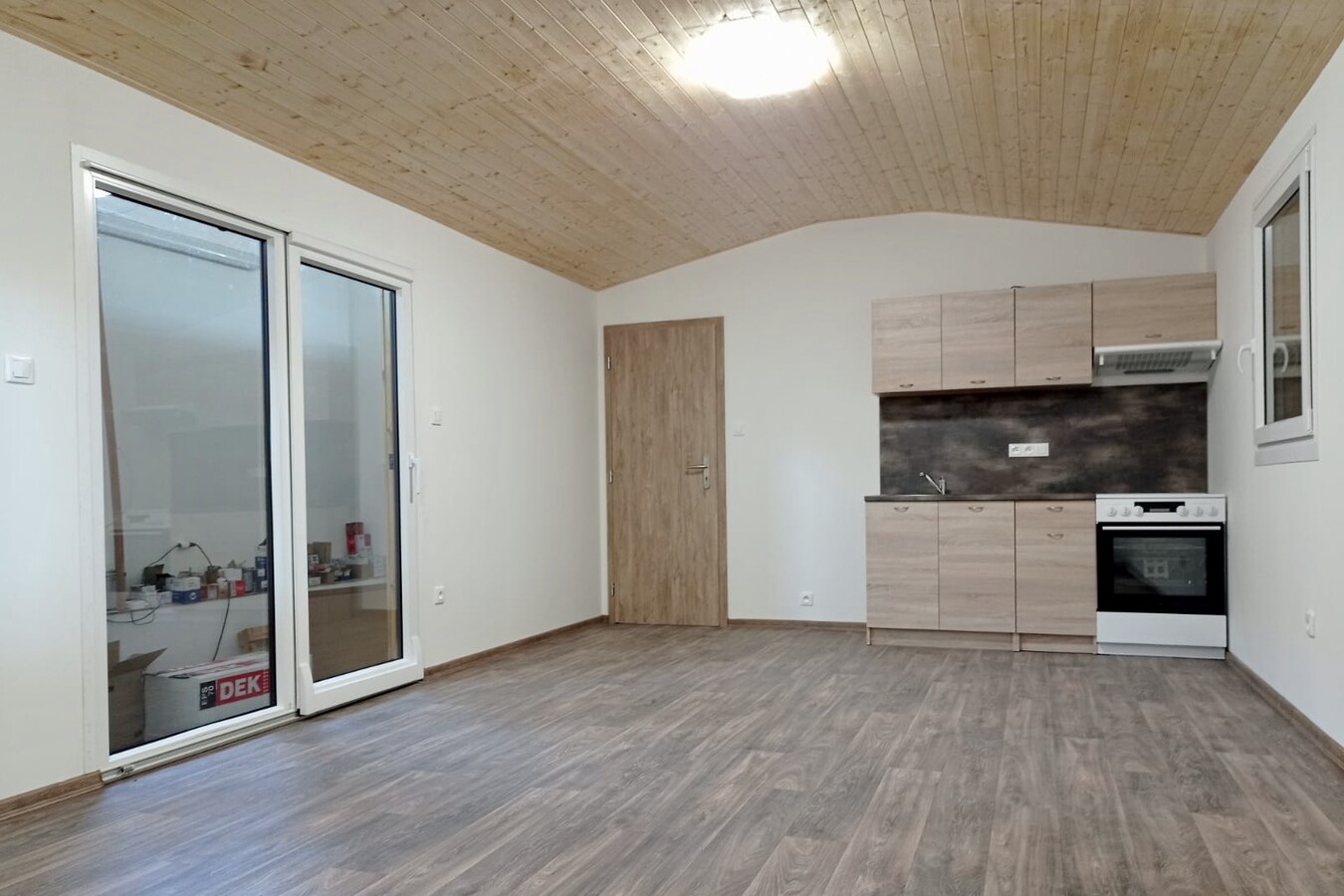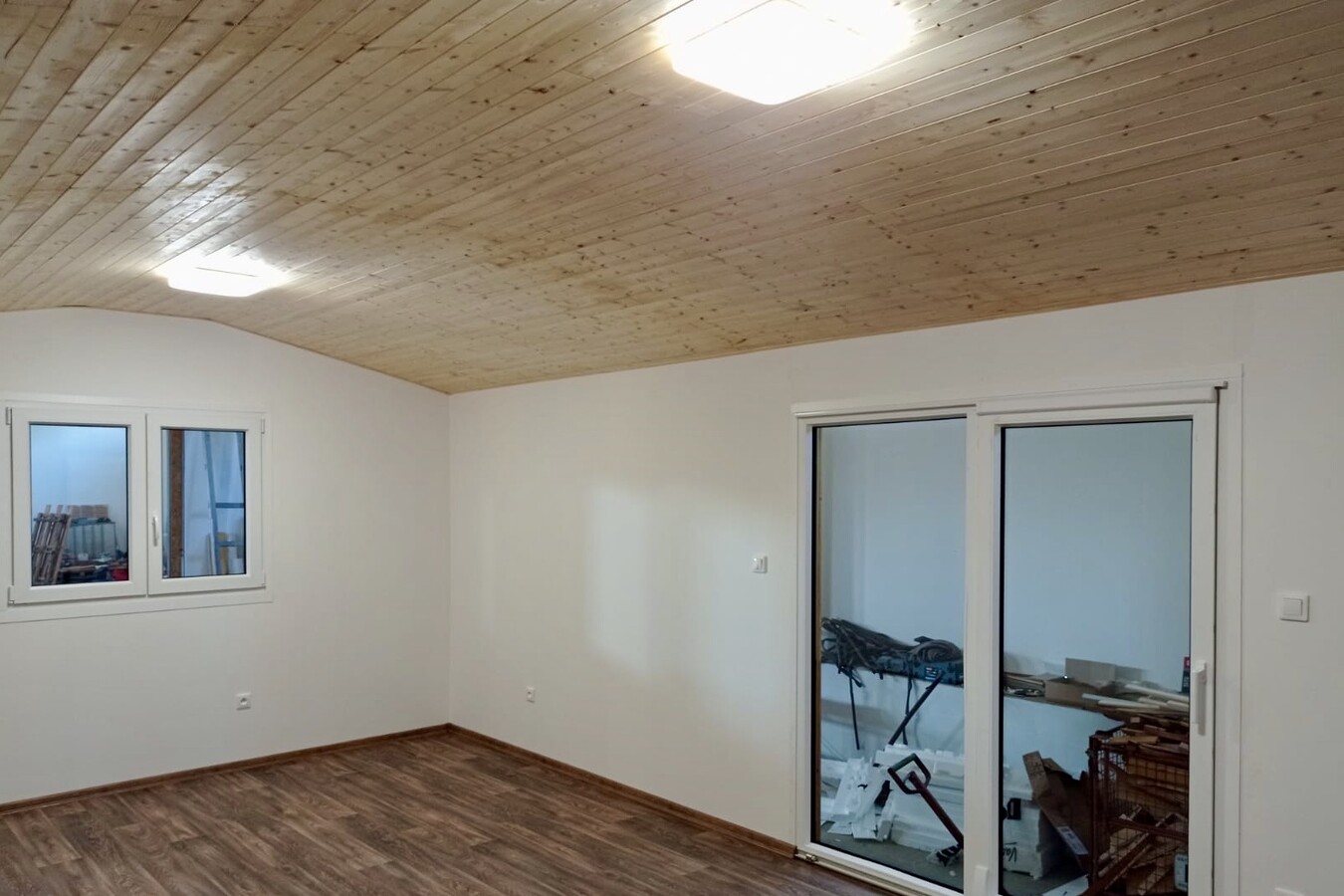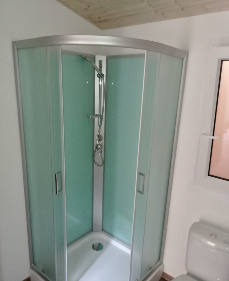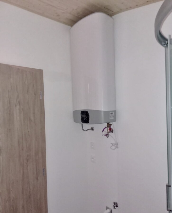| Výbava: | Nový, dřevěný obklad, vnitřní stěny sádrokarton, strop dřevěný obklad, podlaha zátěžové lino, kuchyně, (dřez, digestoř, varná deska s troubou), koupelna (WC, umyvadlo, sprchový box, bojler 80l), síla vnějších stěn cca 17 cm, podlahy 15 cm, střecha 24 cm |