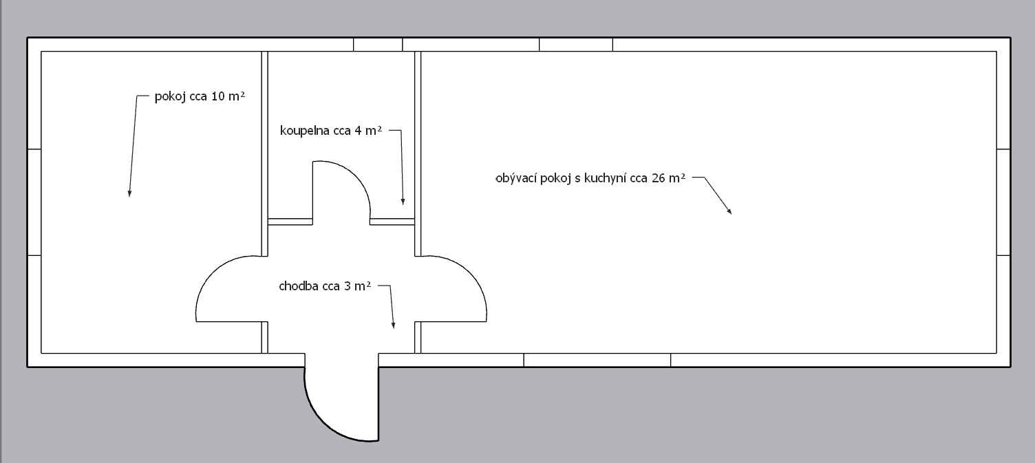| Rozvržení: | 2 ložnice, obývací pokoj s kuchyňským koutem, koupelna, WC |